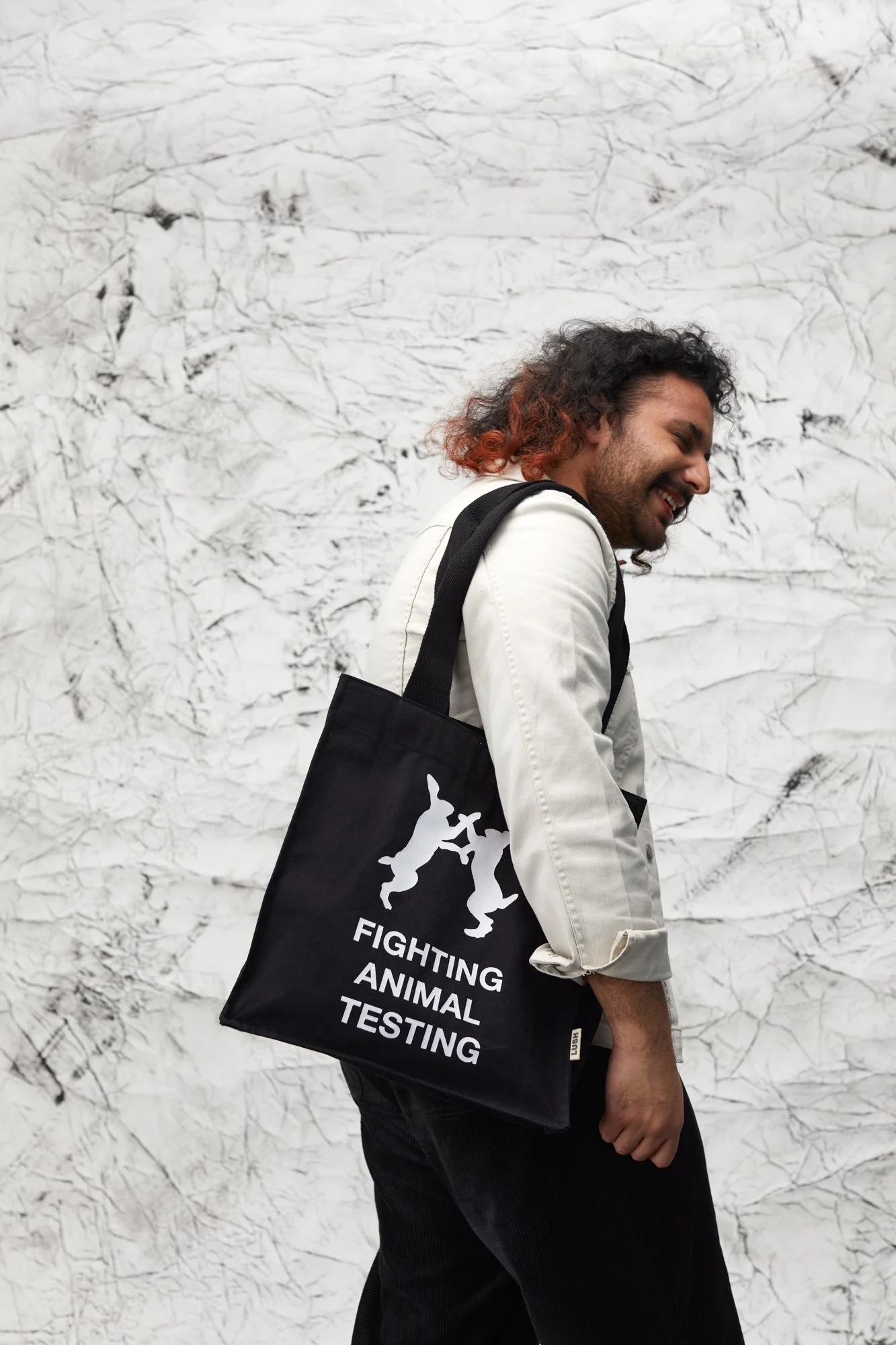 Dieser Shopping-Bag hat es in sich: Hergestellt wird er von der Re-Wrap Kooperative in Mysore, Indien und besteht aus fair gehandelter Bio-Baumwolle. Selbstverständlich zieren ihn unsere beiden Ikonen des Kampfes gegen Tierversuche: zwei boxende Hasen. Wenn du eine dieser Taschen kaufst und trägst, machst du nicht nur deine Mitmenschen auf den Kampf gegen Tierversuche bei der Kosmetikproduktion aufmerksam, du unterstützt auch die Arbeit von Re-Wrap, welche die Position von Frauen in Indien stärkt.